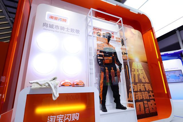淘宝骑士服装全新亮相,搭载行业首创“骑士AI助手”,内置九轴传感器实时监测骑行状态。冬盔全包设计结合石墨烯面料,高效保暖;大面积反光图案与透明信息袋,全面守护夜间骑行安全。